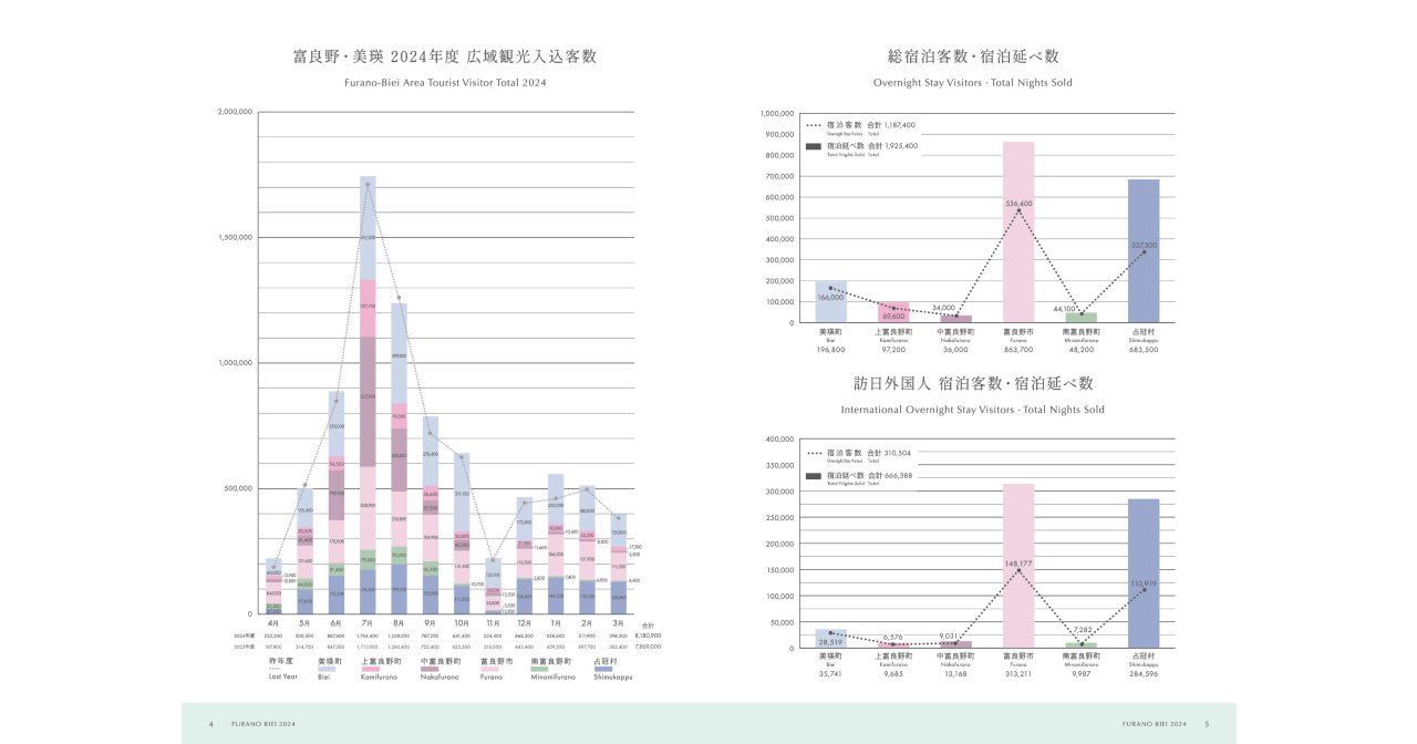 富良野美瑛広域観光レポート2024を制作しました。広域の観光データを伝わりやすいデザインでお届けできるようにお手伝いいたしました。