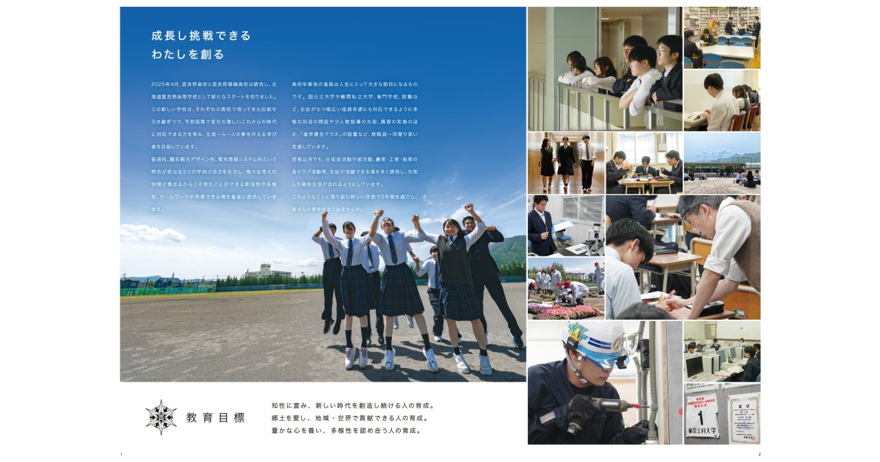 新一年生の皆さんにご協力いただき、前年のデザインを引き継ぎつつ情報量を増やすなど、新しい富良野高校の魅力をより伝えられるようにしました。